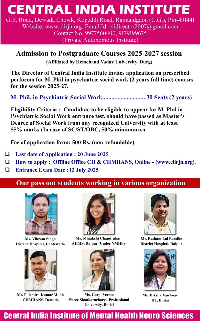 Furthermore we started to achieve new goal on beginning of RCI recognized courses. Since the year 2022 on courses like M.Phil in Clinical Psychology (RCI Regt.) and M.Phil in Psychiatric Social Work for contributing qualitative participation in the field of mental health. We are all set to take the mission of imparting world class professional training to the aspiring mental health professionals, a new state of the art institution as an addendum to the existing infrastructure so as to fortify them contribute their best to the society and the country. With Warm Wishes.